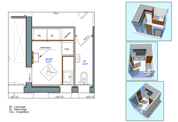Une cliente m’a contacté pour réaménager sa maison des années 80. Elle souhaitait moderniser les différentes pièces, notamment la cuisine, les deux salles d’eau et le cellier. L’objectif a été de décloisonner l’entrée afin de créer un espace de vie plus ouvert et lumineux. Nous avons travaillé ensemble un plan qui optimise la fonctionnalité de chaque espace. La cuisine a été transformée en véritables pièce à vivre, avec un îlot central et des rangements généreux. Elle reste semi-ouverte avec une double porte à galandage donnant sur la pièce de vie. Les salles d’eau sont modernisées avec des douches à l’italienne et des finitions haut de gamme. L’organisation du cellier est repensée pour offrir un maximum de rangement tout en restant esthétiques. Cette approche garantit un réaménagement harmonieux, alliant confort et design moderne.